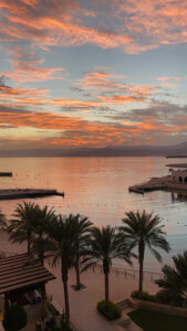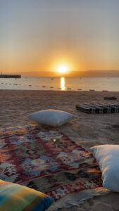 Reise weiter nach Aqaba, einer schönen Küstenstadt am Roten Meer. Hier kannst du die Sonne an weißen Sandstränden genießen, in den farbenfrohen Korallenriffen schnorcheln und tauchen oder in einem der luxuriösen Resorts entspannen. Aqaba ist ein Paradies für Wassersportler. Probiere Aktivitäten wie Jetski, Windsurfen oder eine Fahrt in einem Glasboot aus. In der Nebensaison sind viele Luxus-Hotels durchaus bezahlbar. Wir haben im November im „Al Manara“ übernachtet, einem Hotel der Marriott-Kette. Das Hotel ist luxuriös mit einem sehr guten Restaurant, einem eigenen Strandabschnitt und coolen Aktionen wie beispielsweise „Lagerfeuer und Tee am Strand bei Sonnenuntergang“.